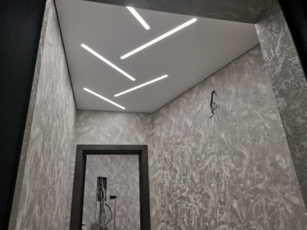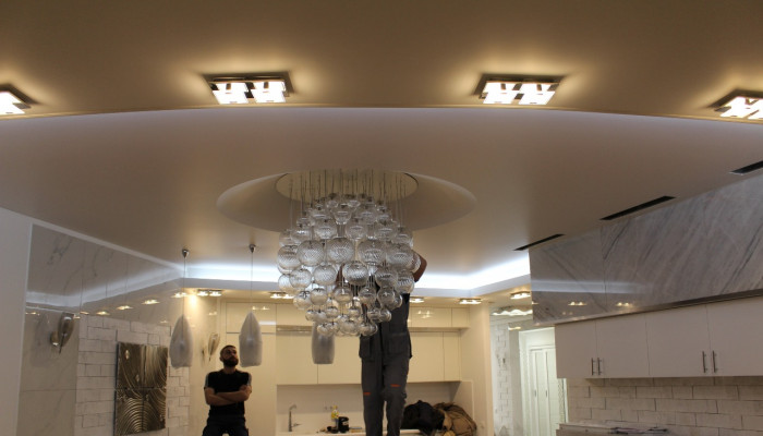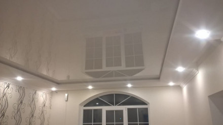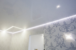 Для ванной, кухни, прихожей лучше выбирать глянец, мат с фотопечатью или вставками, сатин в белом цвете. Во-первых, в эксплуатации покрытие из пленки проще и не требует специальных средств ухода. В-вторых, оно легко переносит затопление, а для возвращения потолку первоначального вида нашему специалисту достаточно слить воду. В-третьих, времени на монтаж глянцевого полотна потребуется от 40 минут без потери качества.