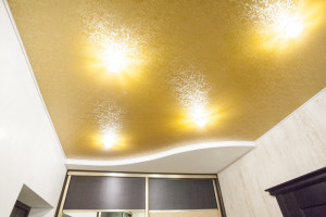 Минусы решений с натяжными потолками из ткани — это, конечно, цена (выше на несколько тысяч рублей, чем у ПВХ) и негерметичность. Материал пропускает влагу, при затоплении комнаты сверху соседями или при разрыве различных коммуникаций. Не удерживает ее внутри натяжного потолка, не переносит даже аккуратную влажную уборку с моющими средствами.