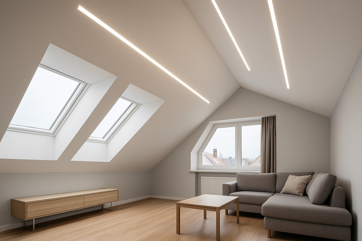 Обязательно заказывайте установку нескольких источников света. Это могут быть трековые светильники, ниши SLOTT, точечные или споты. Не менее интересно смотрятся контурные, где свет расположен по периметру.