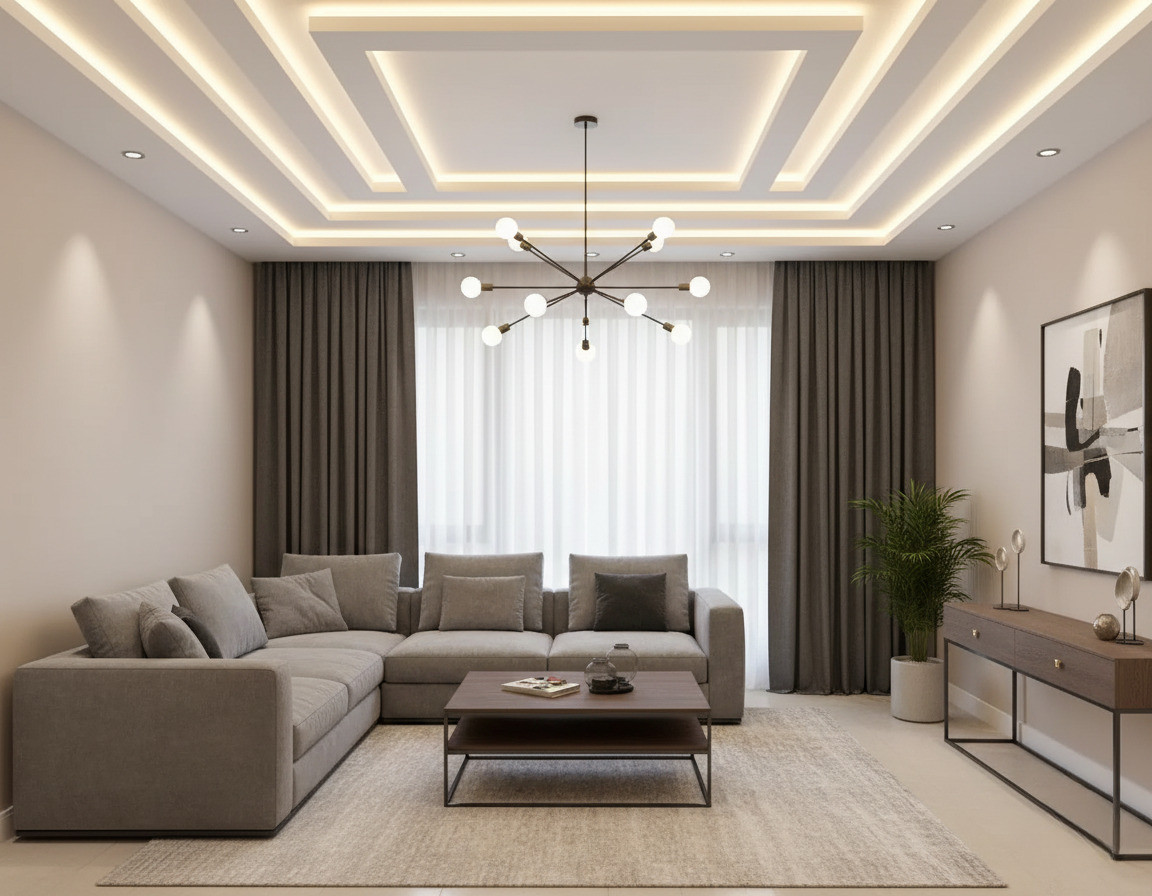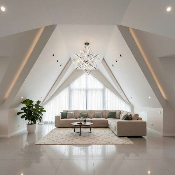 - функционал – встроенное освещение с возможностью создавать любые сценарии, маскировка черновой поверхности вместе со всеми коммуникациями.