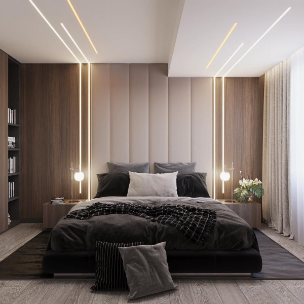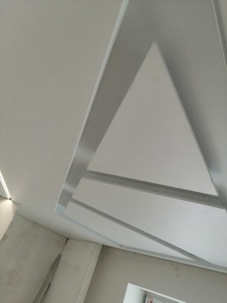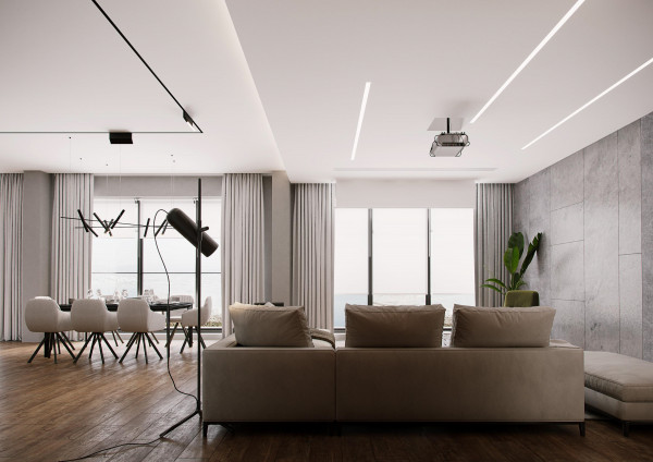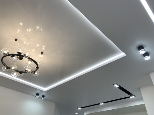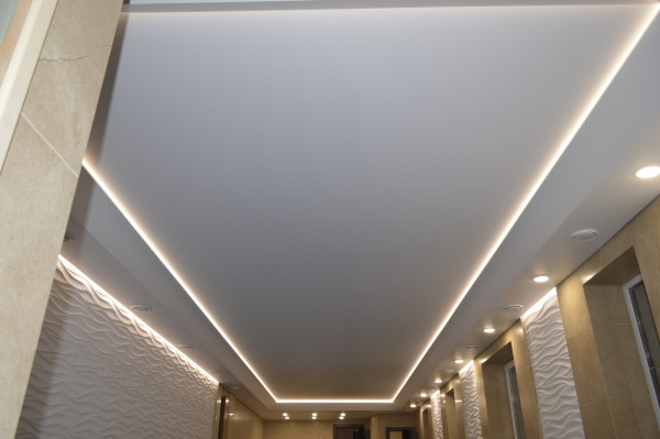 Двухуровневые натяжные потолки заказывают в том случае, если хотят зонировать пространство, замаскировать конструктивные недостатки комнаты, встроить освещение (скрытое или нет).