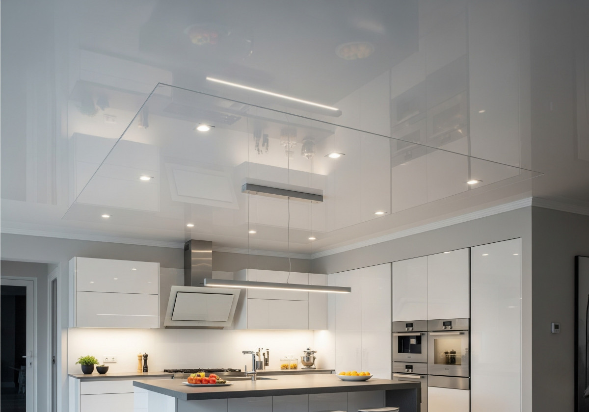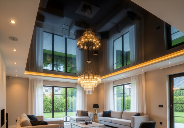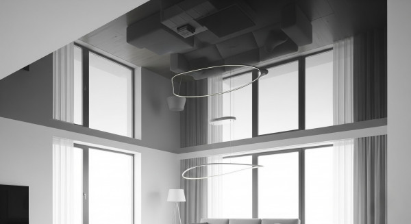 Он хорошо смотрится в одноуровневых конструкциях, в двух и более зонирует пространство, становясь главным акцентом даже в светлом цвете. Чем темнее его лаковая поверхность, тем сильнее она отражает свет и окружающие предметы, делая его похожим на черное зеркало.