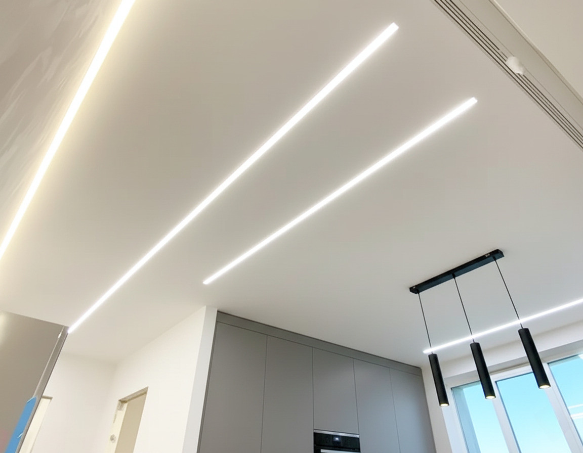 Выбрали третье утверждение? Тогда споты, трековые светильники в нишах или на шинопроводах — ваш выбор. Они свободно перемещаются по всей длине крепления, вращаются под разными углами. Варьируйте световые акценты, как вам нравится в любой момент.