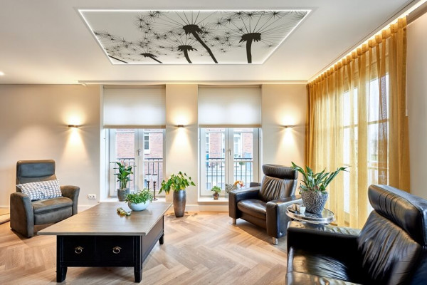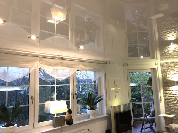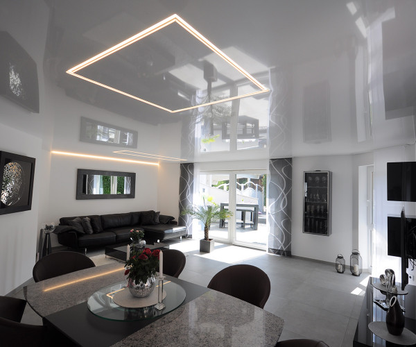 - долговечность — срок службы натяжного потолка измеряется годами. 15-16 лет без потери качества и вида полотно будет украшать ваш дом.
