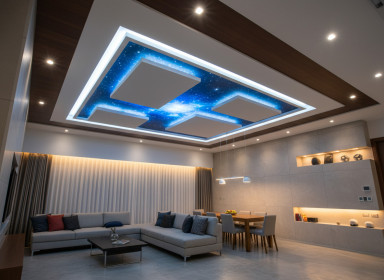С натяжными потолками в частный дом от компании Потолок Сервис вы быстро доделаете ремонт или обновите обстановку во всем коттедже или одной комнате. Мы устанавливаем конструкции любой сложности от одноуровневых, до потолков «Звездное небо» с оптоволоконными нитями и фотопечатью.