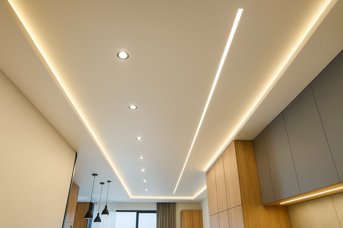 - организовать несколько сценариев освещения – сделать встроенный, верхний, точечно направленный свет;